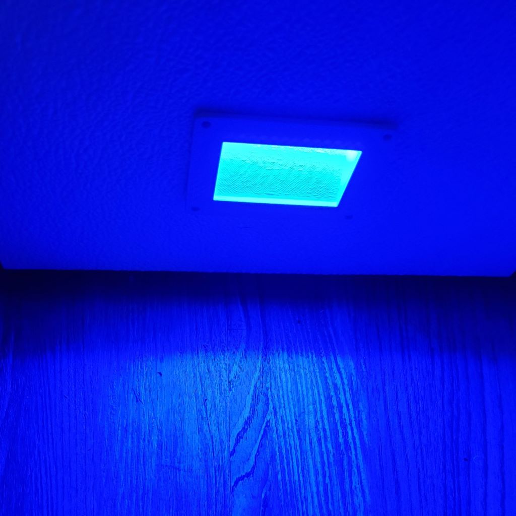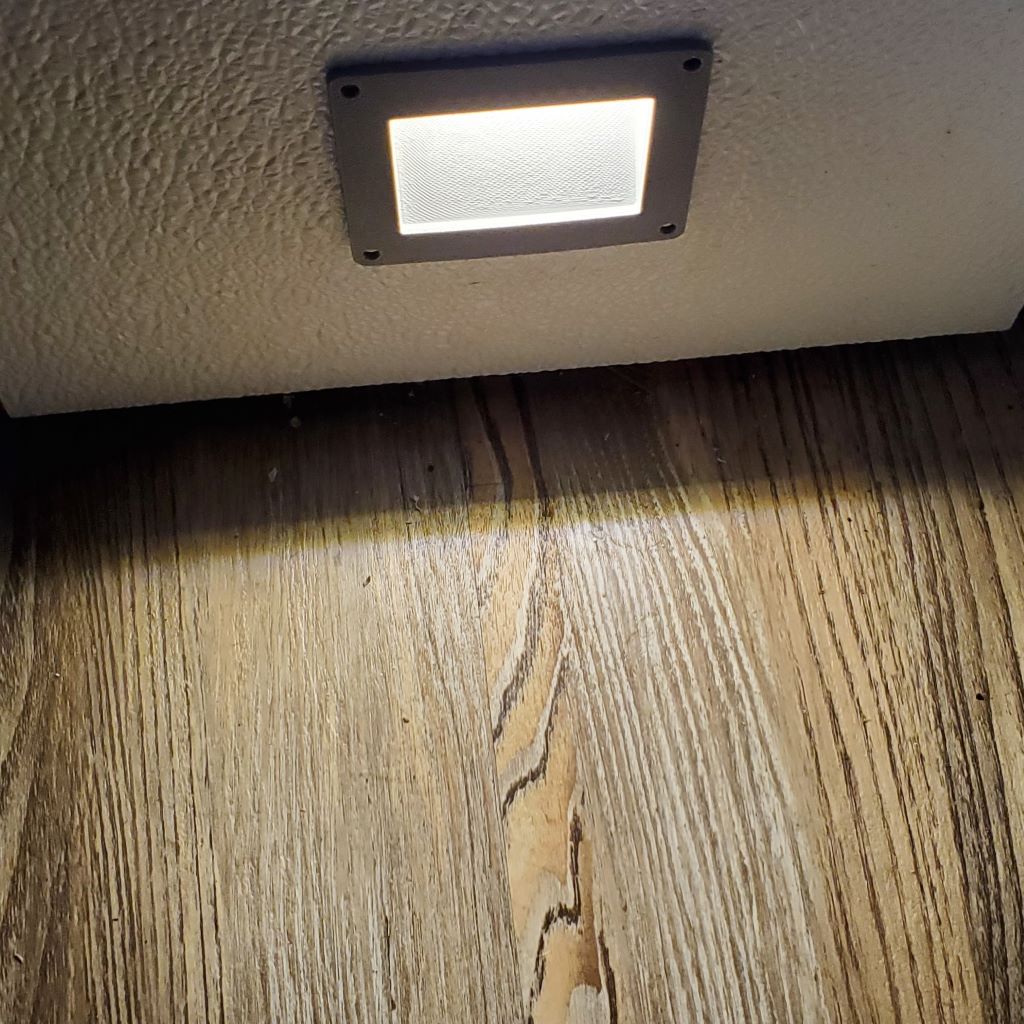 Designed to be mounted in a wall close to the floor to illuminate aisles and walkways